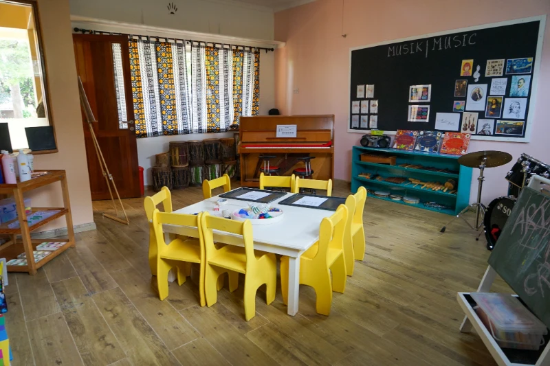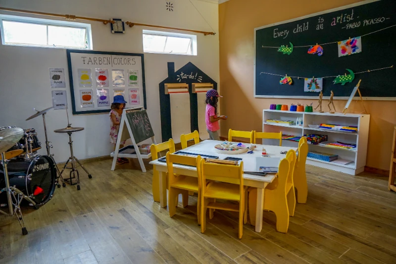 Drei unterschiedlich gestaltete Spielplätze laden zum Entdecken ein, während der gemütliche Schlafraum für Krippenkinder oder der Sensomotorische Raum Ruhe und Erholung bietet. Freitags steht der Naturtag im nahegelegenen Karura Forest, unserem Schulgarten oder unsere Matschküche auf dem Programm.
