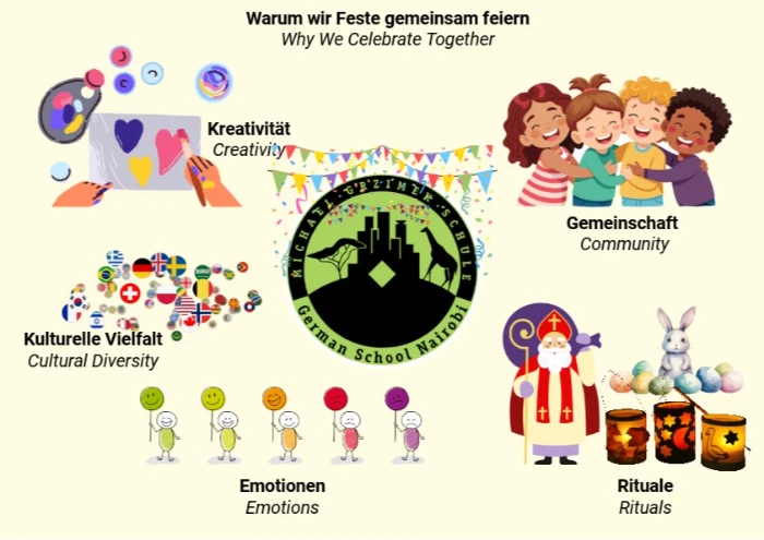 Hierfür laden wir oft die Eltern ein, nicht nur um uns zu unterstützen sondern um diese Gemeinschaft zusammen zu erleben, in unserer Community in der Deutschen Schule Nairobi zu wachsen und unsere Vielfalt und das Individuum im sozialen miteinander zu zelebrieren.